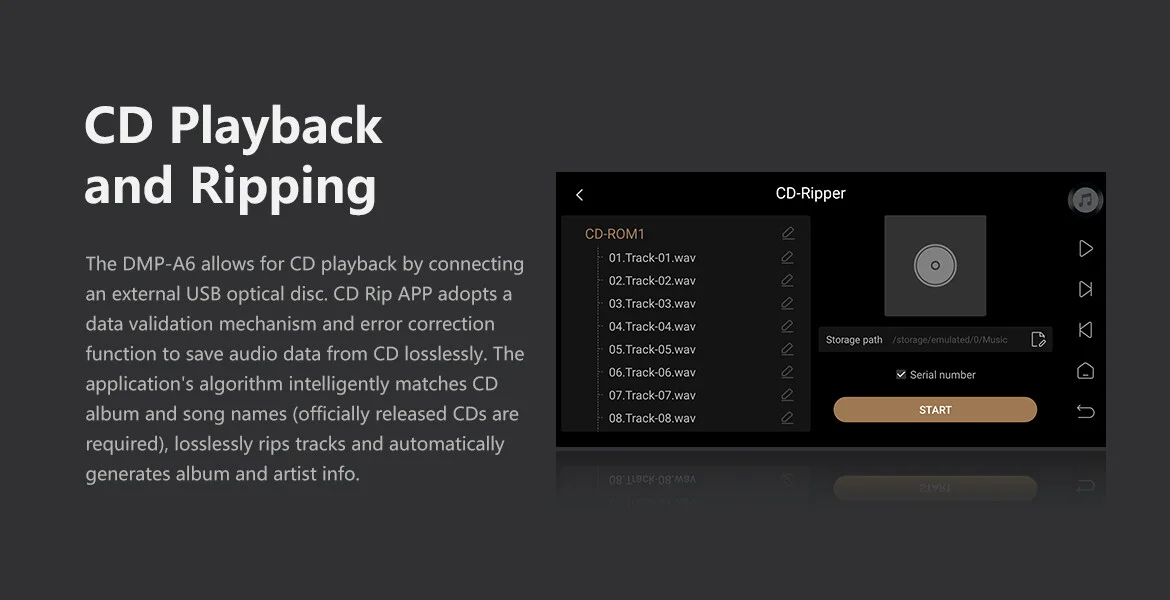 • Ondersteuning voor extern USB optisch station voor het afspelen van cd’s en het rippen van cd’s.