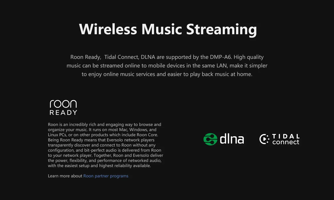 • Ondersteuning voor Roon, Tidal Connect, enz.