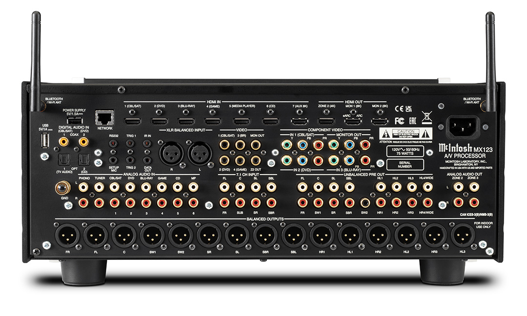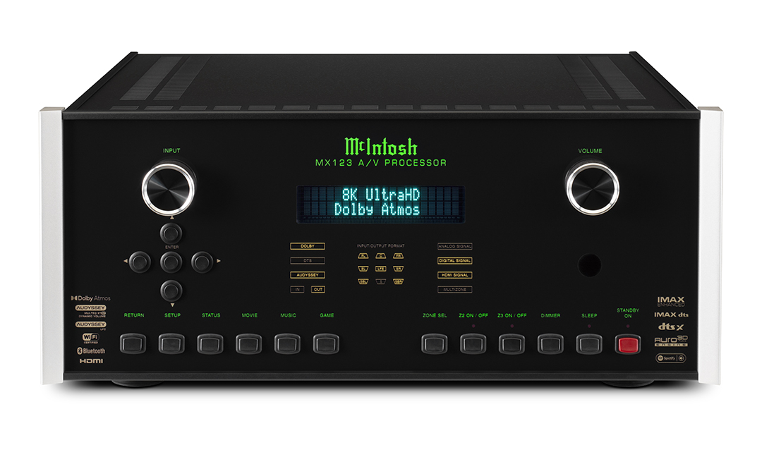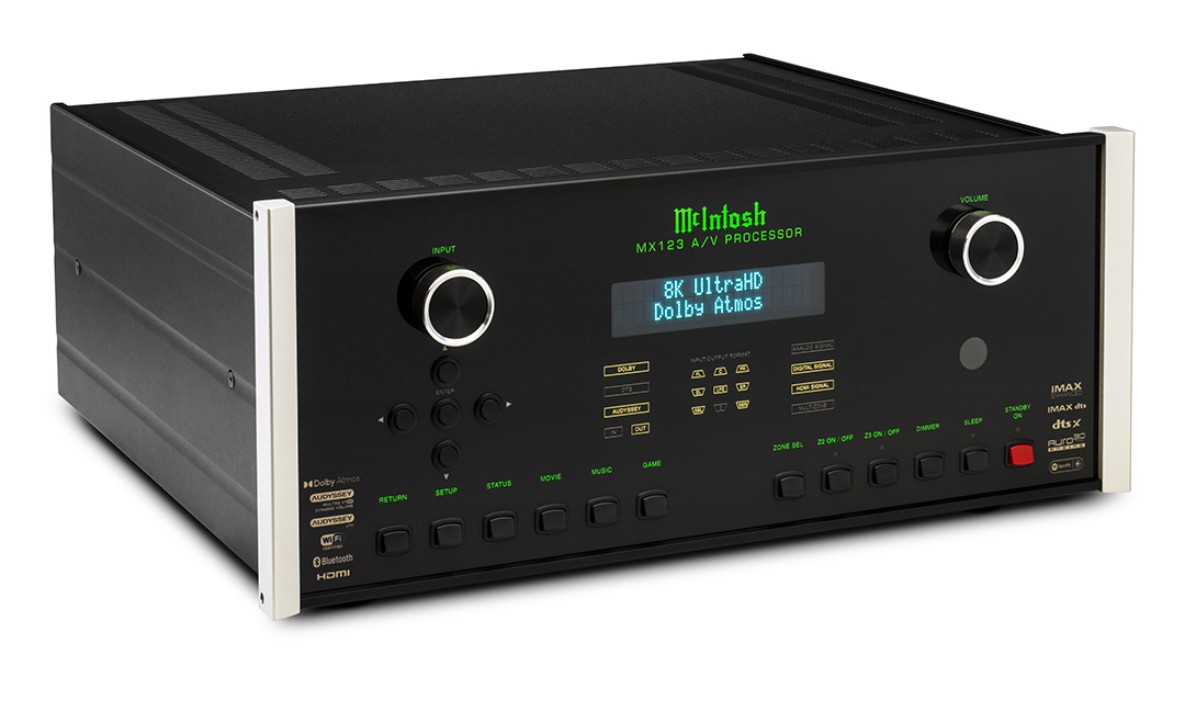 De McIntosh MX123 A/V processor combineert een lange traditie van compromisloze McIntosh-geluidskwaliteit met de nieuwste thuisbioscooptechnologieën om je een onovertroffen luxe thuis entertainmentervaring te bieden. De MX123 is compatibel met alle toonaangevende home cinema surround sound en object gebaseerde 3D-audioformaten, waaronder Dolby Atmos, DTS: X en Auro-3D. Ook is er volledige compatibiliteit met moderne 4K/120Hz en 8K/60Hz Ultra HD-videobronnen en kunnen lagere resoluties worden opgeschaald naar 4K Ultra HD voor de best mogelijke beeldkwaliteit.