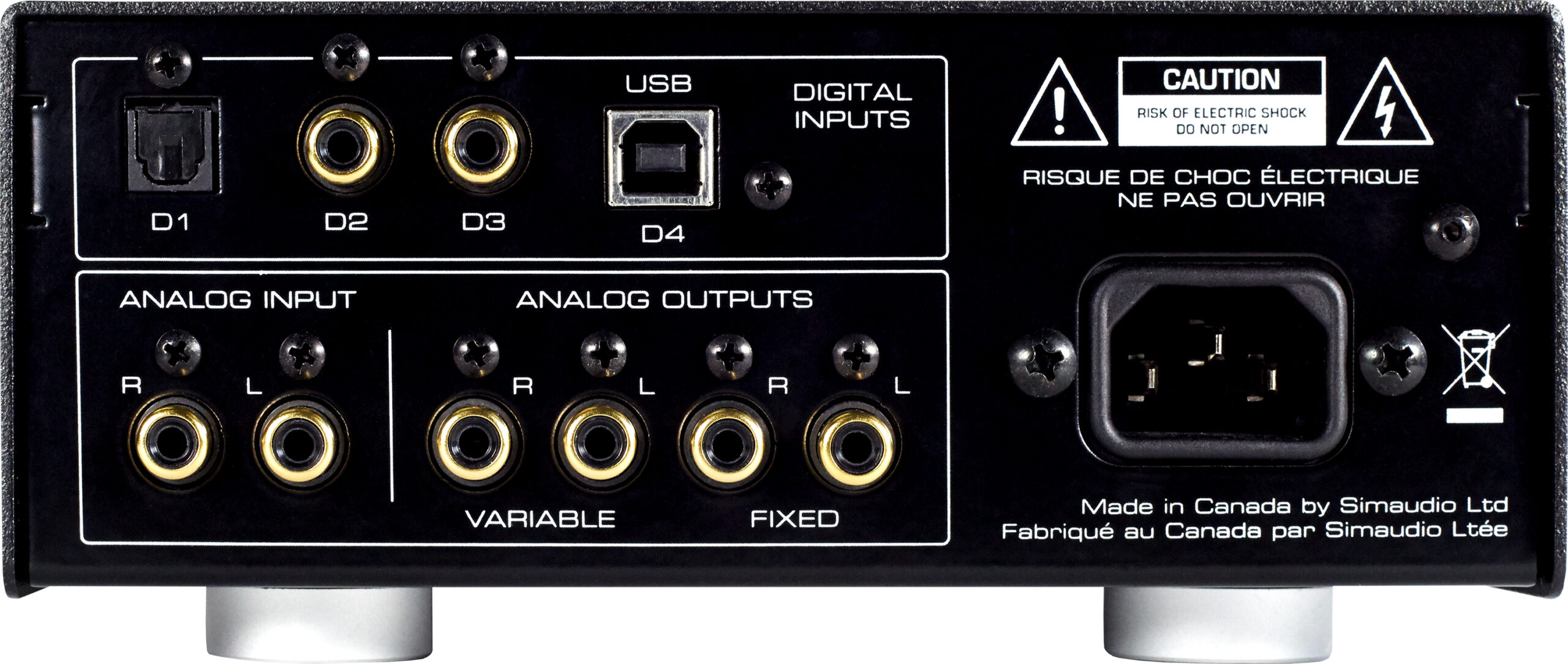 - Volledig asynchrone DAC met vier (4) digitale ingangen (S/PDIF x 2, TosLink x 1 & USB x 1) voor gebruik met vrijwel elke digitale bron; Ondersteunt DSD64, DSD128 en DSD256 (alleen USB-ingang); Ondersteunt PCM tot 24-bit/192kHz (alle ingangen) en 32-bit/384kHz (alleen USB-ingang).