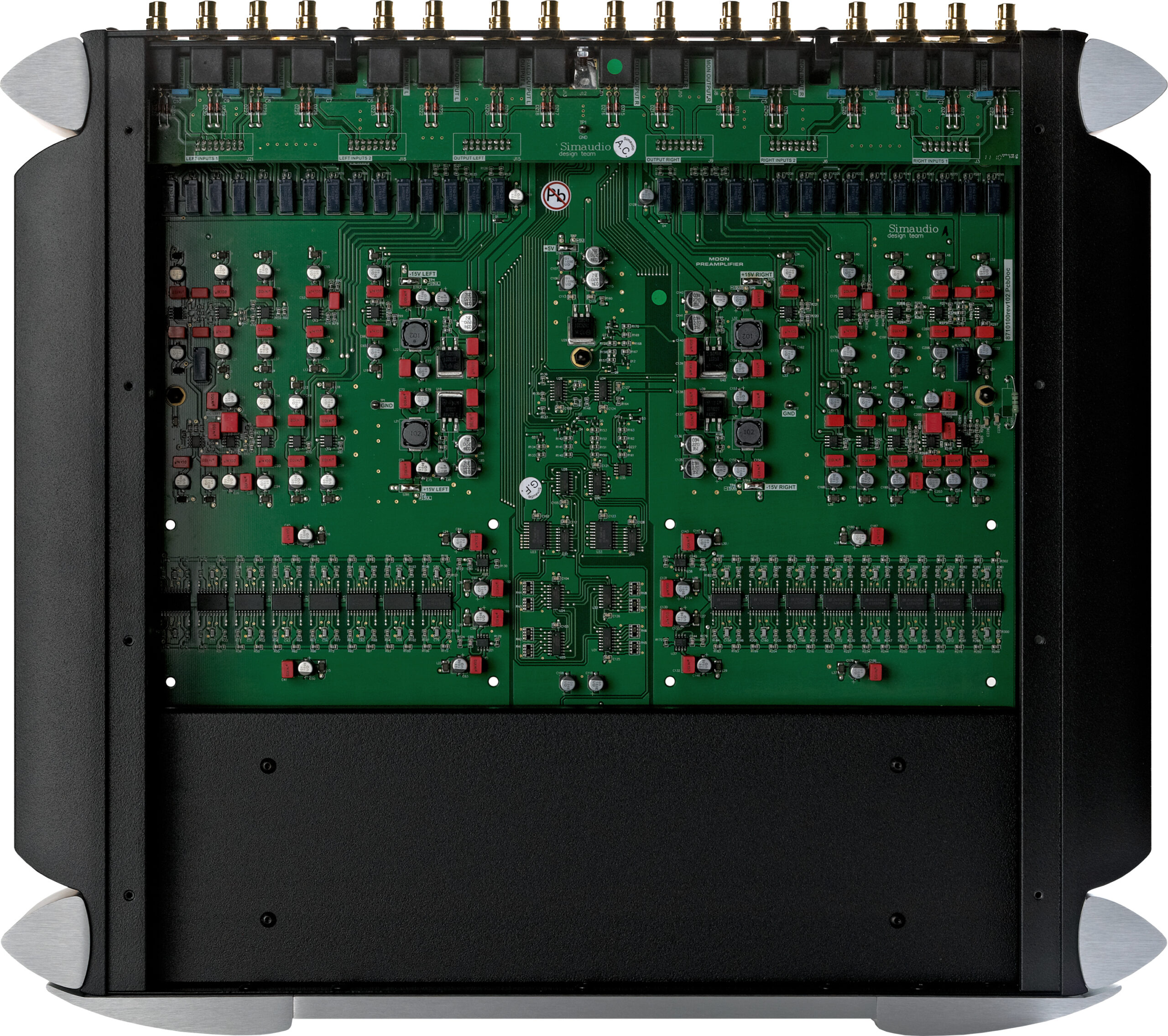 • – Het audiogedeelte van de voorversterker bevindt zich op een eigen printplaat, die is voorzien van